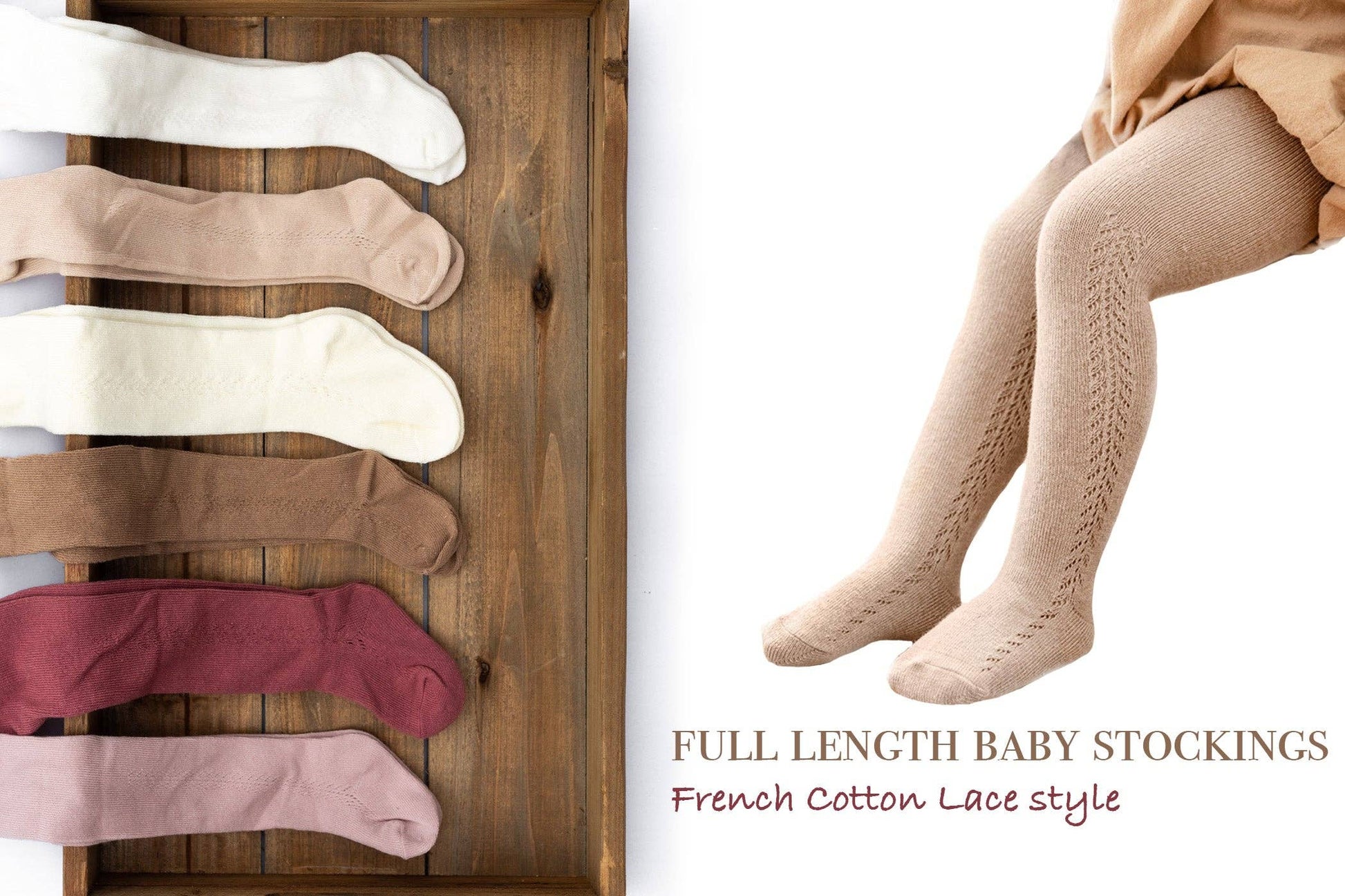 Baby Girl Cotton French Tights, the perfect blend of comfort, stretch, and style for your little one's everyday wear. These leggings are designed in delicate girly neutrals tones, offering a dressed to impress look.