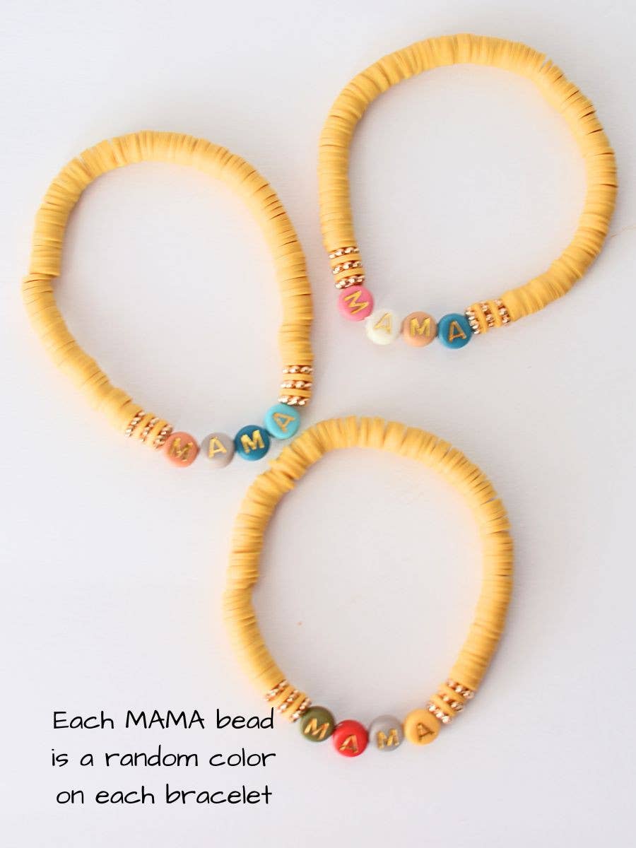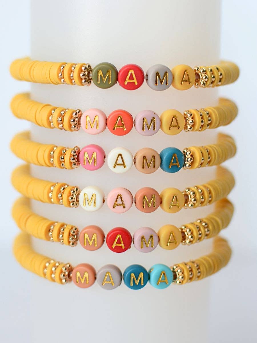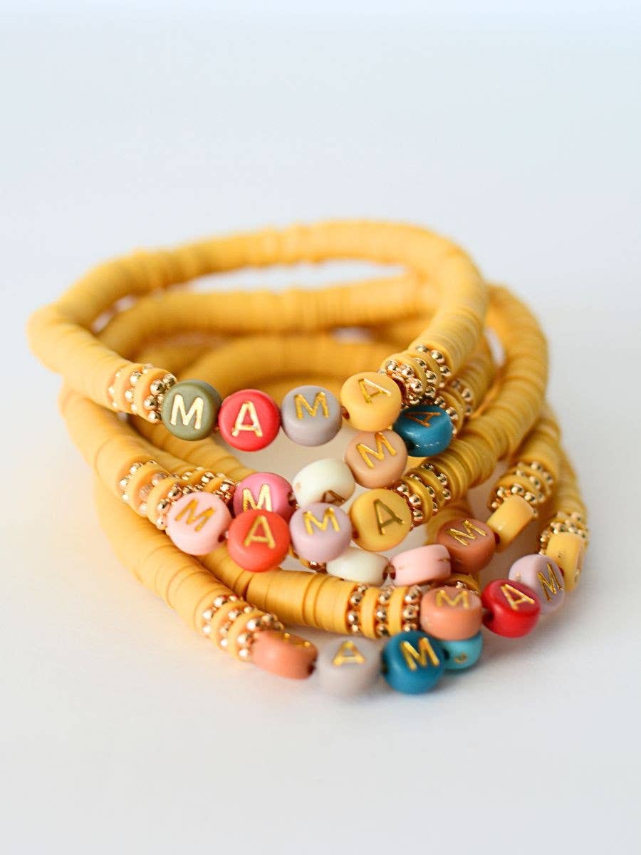 Multi-Colored MAMA Word Beaded Stretch Bracelet – Mustard