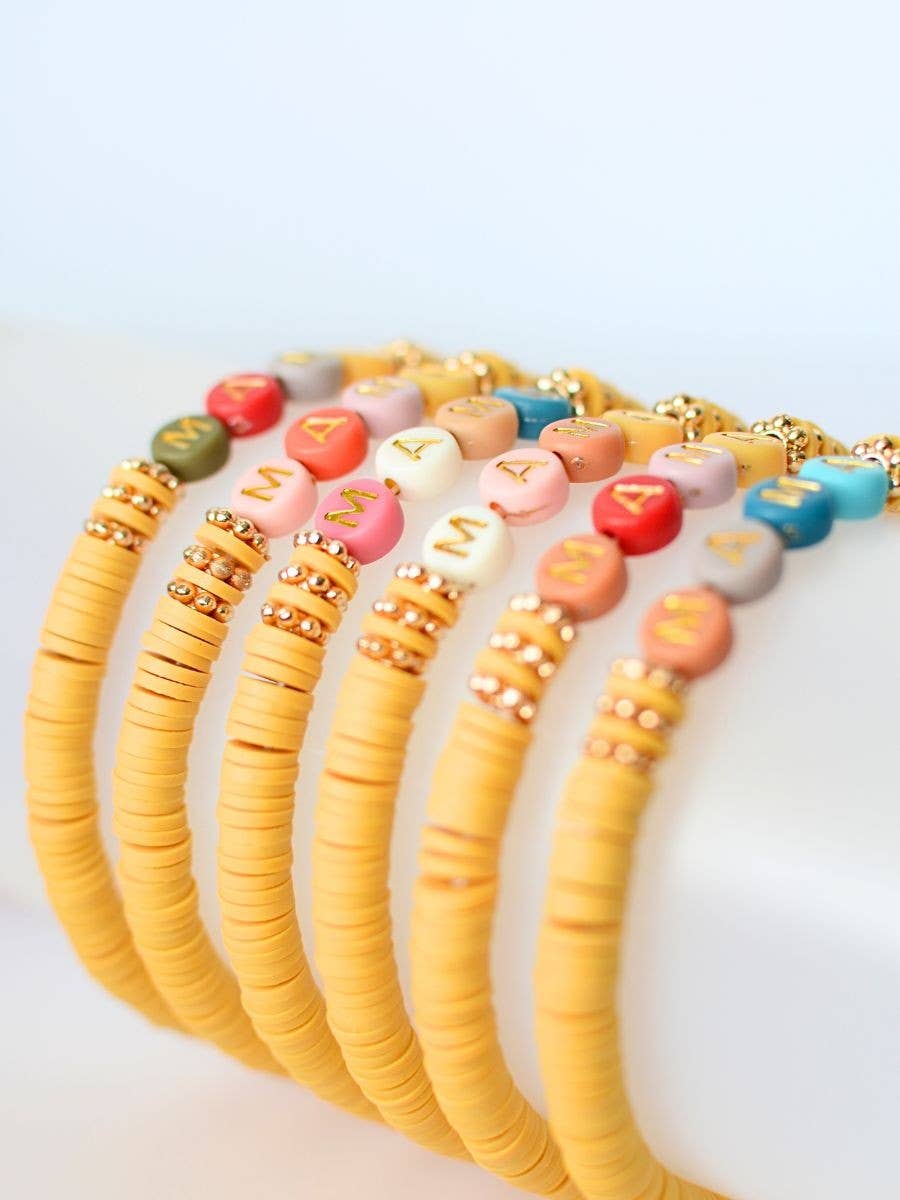 Celebrate motherhood with this MAMA Word Beaded Stretch Bracelet in a stunning Mustard color. Featuring gold-colored lettering and vibrant poly clay beads, this bracelet adds a colorful, personalized touch to your style. Each bracelet has a unique multi-colored bead combination, so no two are alike—ensuring a one-of-a-kind piece for every wearer.